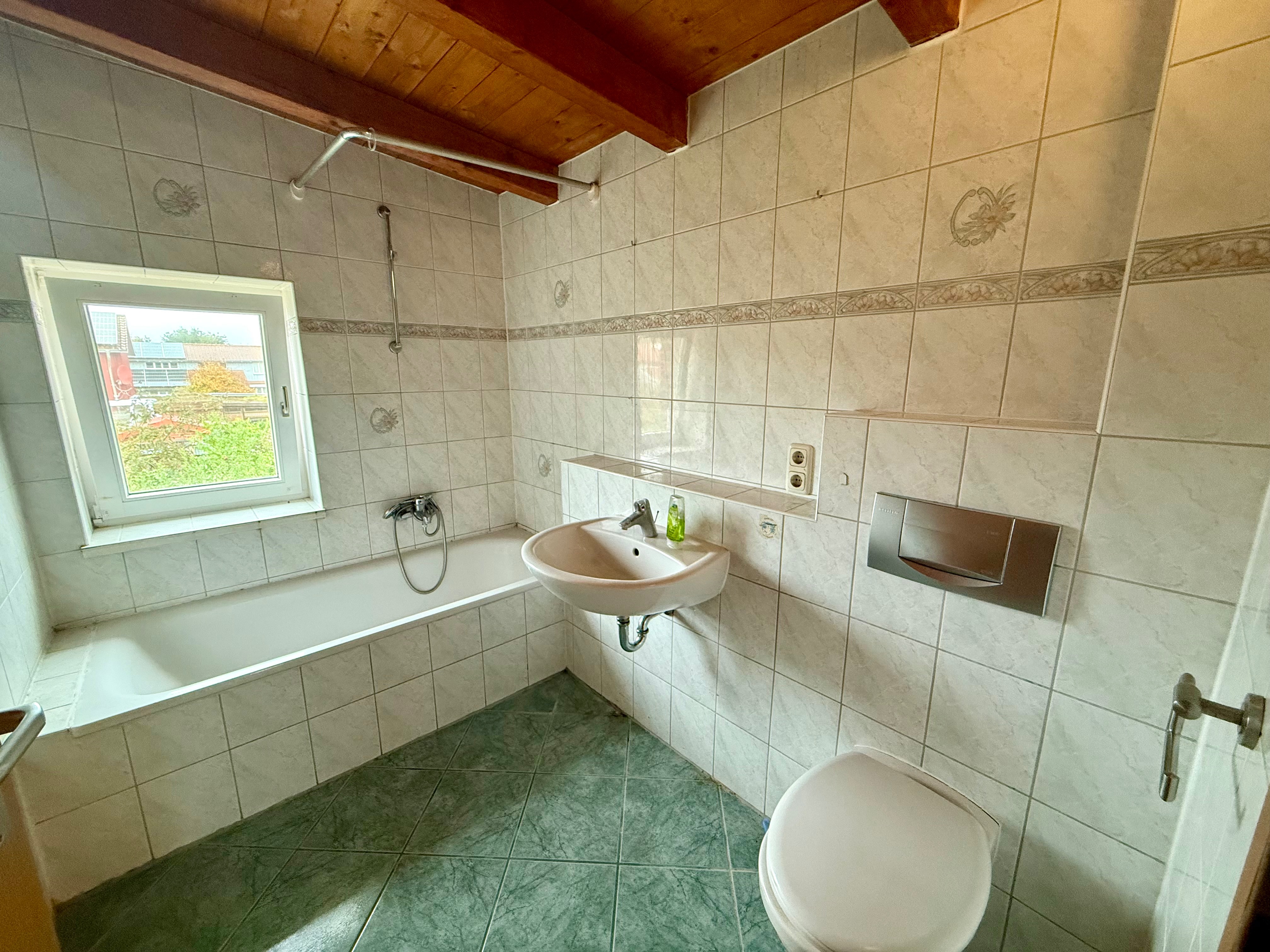 - Ausstattung des Bades Dusche Fenster