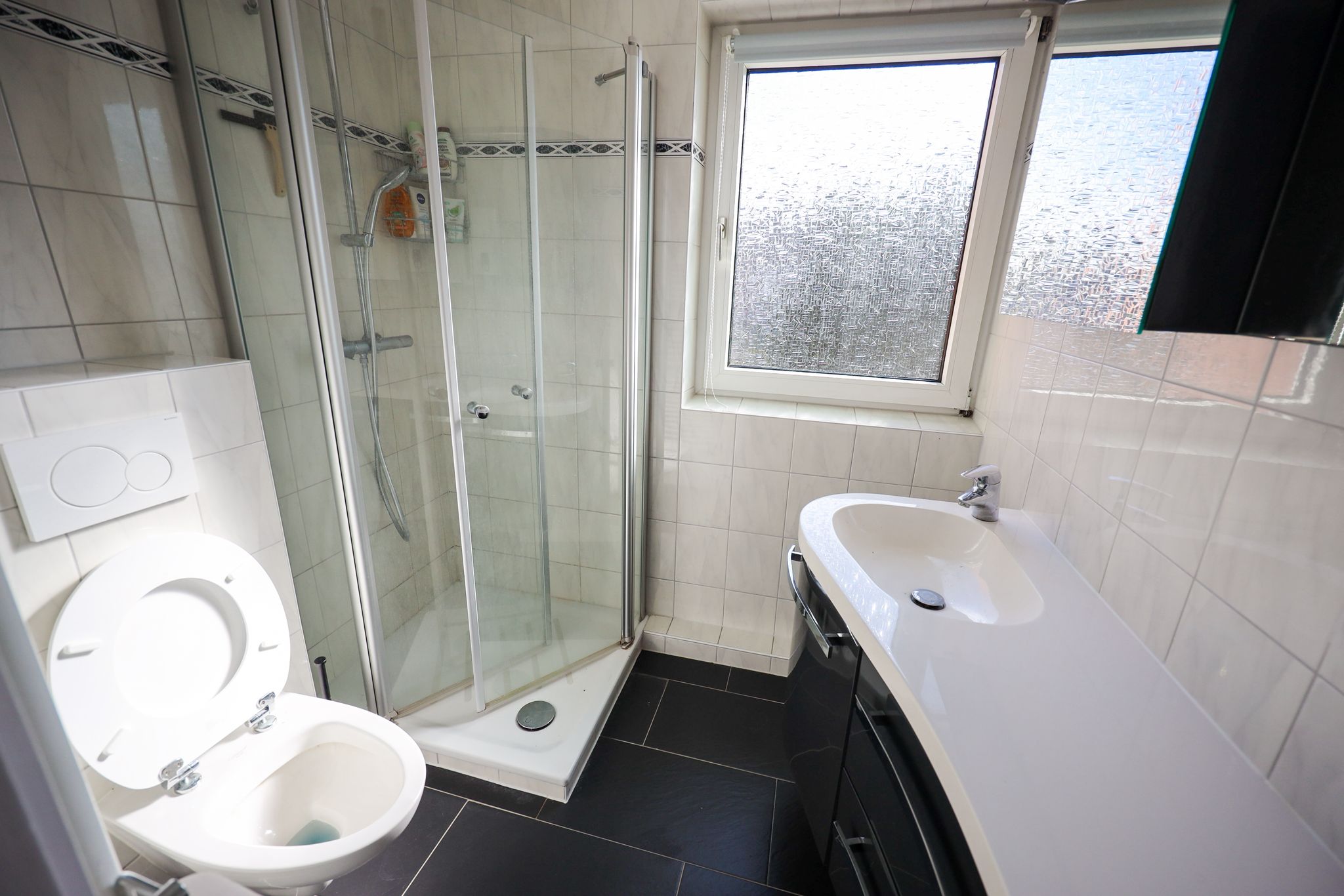 - Ausstattung des Bades Dusche Fenster